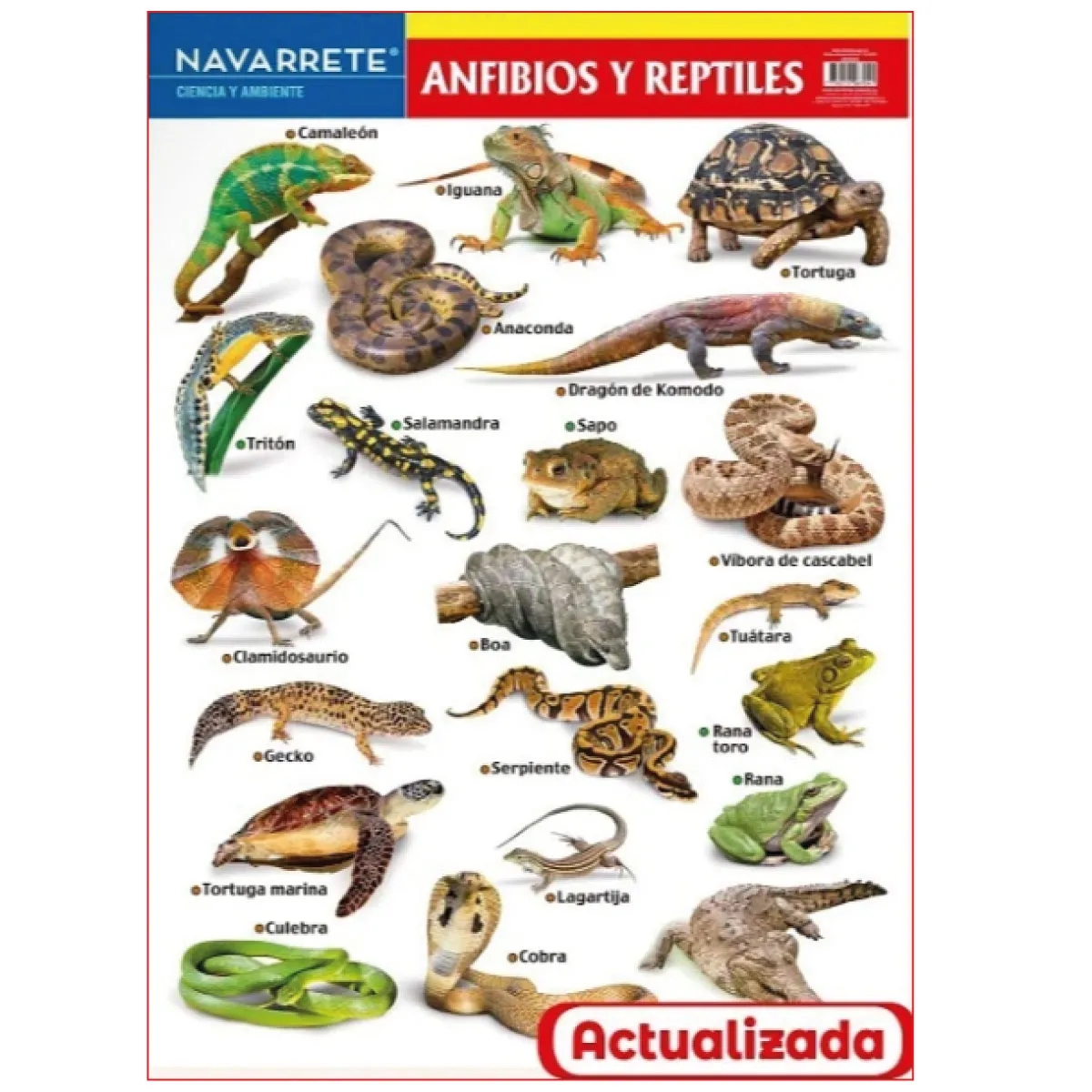 Lámina mural 50 x 70 cm Anfibios y reptiles
