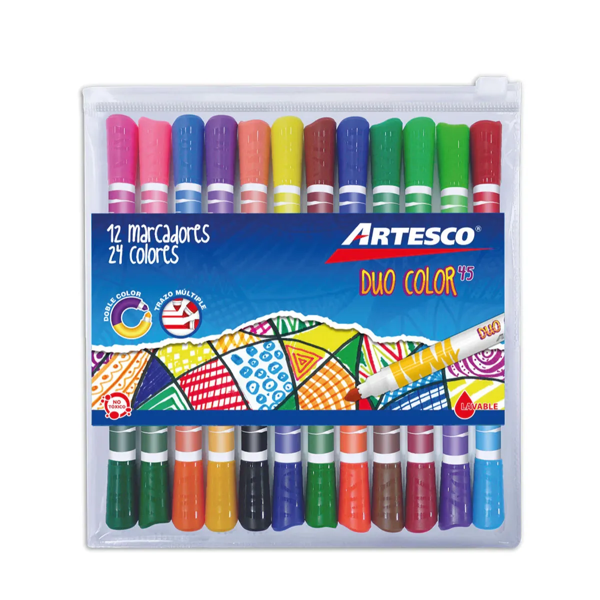 •12 Marcadores delgados con 24 colores.
